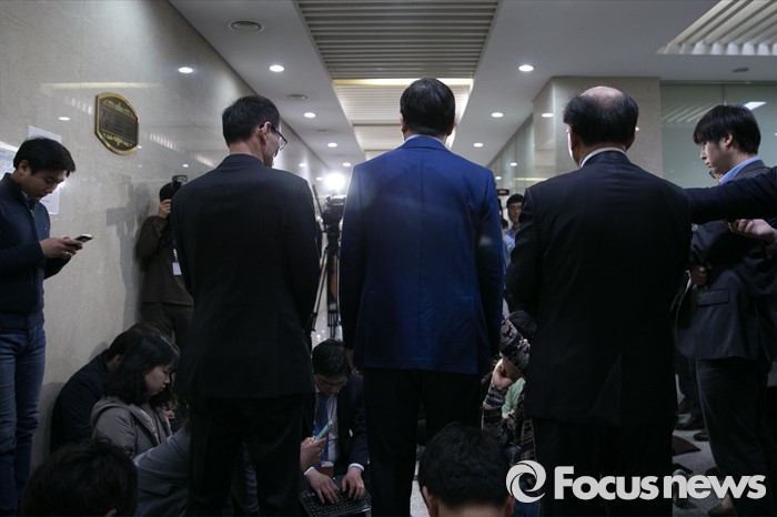 (서울=포커스뉴스) 김홍걸 더불어민주당 국민통합위원장이 16일 오전 서울 여의도 국회 정론관에서 기자회견을 열고 20대 총선 불출마를 공식 선언한 뒤 취재진 질문에 답하고 있다.