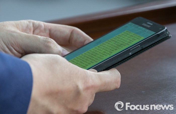 (서울=포커스뉴스) 김홍걸 더불어민주당 국민통합위원장이 16일 오전 서울 여의도 국회 정론관에서 기자회견을 열고 핸드폰에 적은 20대 총선 불출마를 공식 선언 발표문을 읽고 있다.