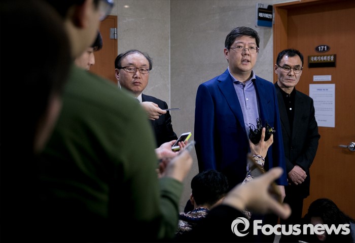 (서울=포커스뉴스) 김홍걸 더불어민주당 국민통합위원장이 16일 오전 서울 여의도 국회 정론관에서 기자회견을 열고 20대 총선 불출마를 공식 선언한 뒤 취재진 질문에 답하고 있다.