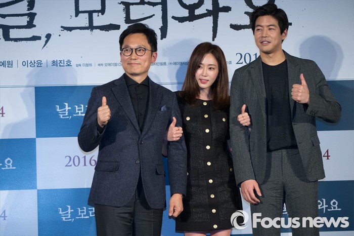 (서울=포커스뉴스) 16일 오전 서울 동대문 메가박스에서 열린 영화 '날,보러와요(감독 이철하)' 제작보고회에 참석한 이철하 감독과 배우 강예원, 이상윤이 사진촬영을 위해 포즈를 취하고 있다. 영화 '날,보러와요'는 이유도 모른채 정신병원에 납치 강금된 여자(강예원)와 시사프로 소재를 위해 그녀의 사연에 관심을 갖게 된 PD(이상윤)가 밝혀낸 믿을 수 없는 진실에 대한 충격실화 스릴러다.