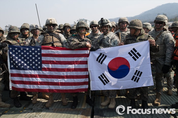 | △ 기념촬영하는 한·미 장병들 |