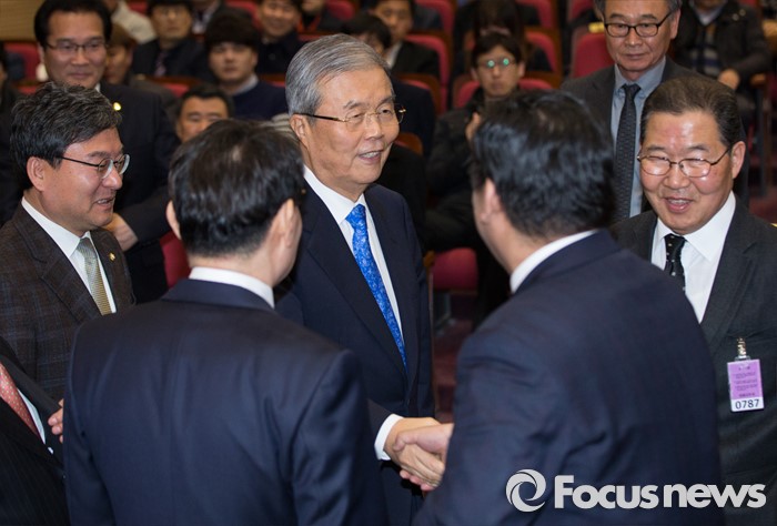 (서울=포커스뉴스) 김종인 더불어민주당 대표가 16일 오후 서울 여의도 국회 의원회관에서 열린 '자영업자 정책연대 및 생존권 사수 출정식'에 참석해 출정식 관계자들과 인사를 나누고 있다.