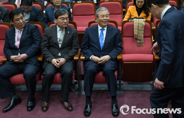(서울=포커스뉴스) 김종인 더불어민주당 대표(가운데)가 16일 오후 서울 여의도 국회 의원회관에서 열린 '자영업자 정책연대 및 생존권 사수 출정식'에 참석하고 있다.