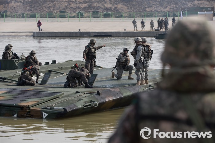 (서울=포커스뉴스) 한·미 공병부대가 16일 연합 도하훈련을 통해 양국의 도하장비 상호 호환성을 점검했다.