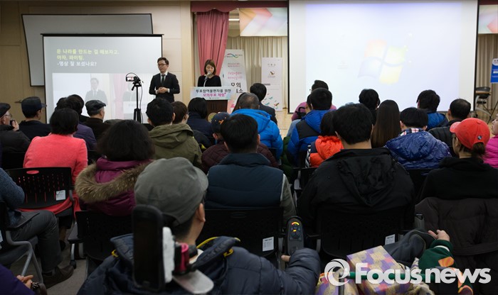 (서울=포커스뉴스) 16일 오후 서울 영등포구 이룸센터에서'20대 총선 거동불편유권자 대상 사전투표 모의 체험행사'에서 사회자가 투표 방법을 설명하고 있다.