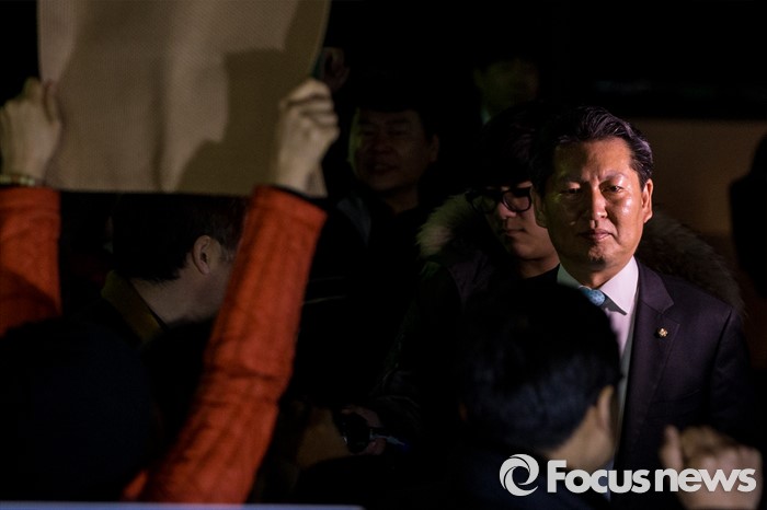 (서울=포커스뉴스) 20대 총선에서 공천배제된 정청래 더불어민주당 의원이 16일 오후 서울 여의도 당사 앞에서 기자회견을 갖기 위해 발걸음을 옮기고 있다.
