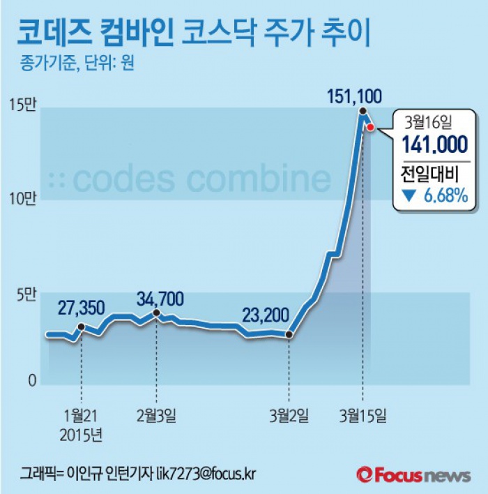 ( ☞ 코데즈컴바인, 배후 세력 있나?…10거래일만에 하락 마감 - 기사 바로가기)