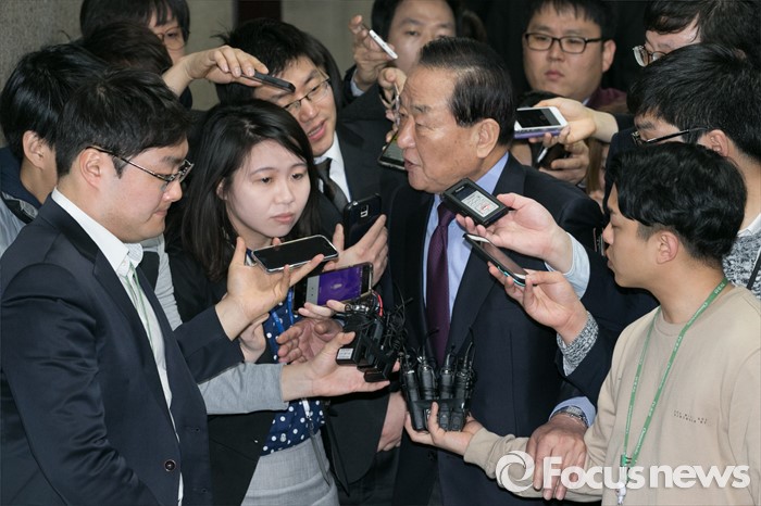 (서울=포커스뉴스) 서청원 새누리당 최고위원이 17일 오전 서울 여의도 국회에서 열린 최고위원회 간담회에 참석하며, 기자들의 질문에 답변하고 있다. 김무성 대표가 불참한 이날 새누리당 최고위 간담회에서는 원유철 원내대표와 일부 최고위원들이 참석해, 공천관리위원회의 의결과 관련해 논의하는 것으로 알려졌다.