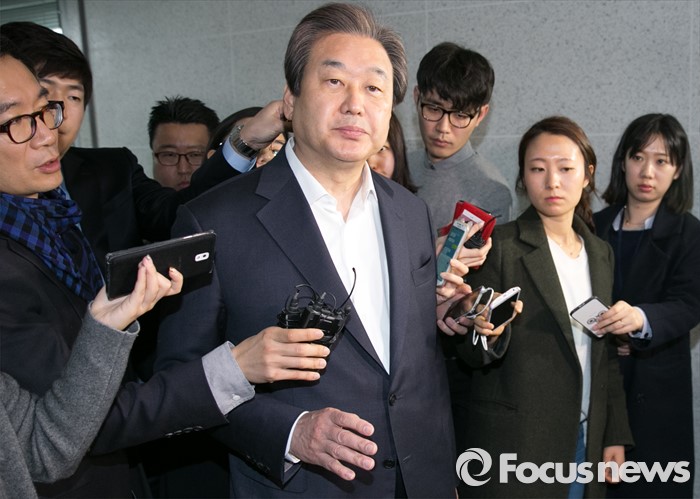 (서울=포커스뉴스) 김무성 새누리당 대표가 17일 오전 서울 여의도 국회 의원회관 의원실로 출근하며 취재진 질문에 답하고 있다.