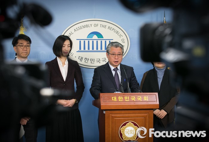 (서울=포커스뉴스) 더불어민주당에 입당한 조응천 전 청와대 공직기강비서관이 17일 오전 서울 여의도 국회 정론관에서 20대 총선 경기 남양주갑 출마 선언을 하고 있다.