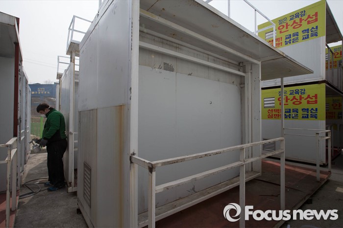 | △ 선거 준비하는 유세차량 구조물 |