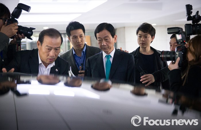(서울=포커스뉴스) 공천에서 배제 된 새누리당 3선 중진 진영 의원이 17일 오후 서울 여의도 국회 정론관에서 탈당을 공식 선언한 후 국회를 빠져 나오고 있다.