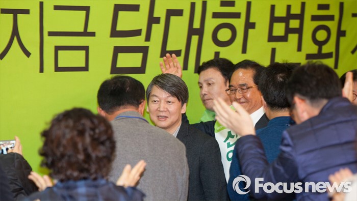 (청주=포커스뉴스) 17일 오후 충북 청주 흥덕구 리호관광호텔에서 열린 국민의당 충북도당 창당대회에 안철수 공동대표가 참석하고 있다.