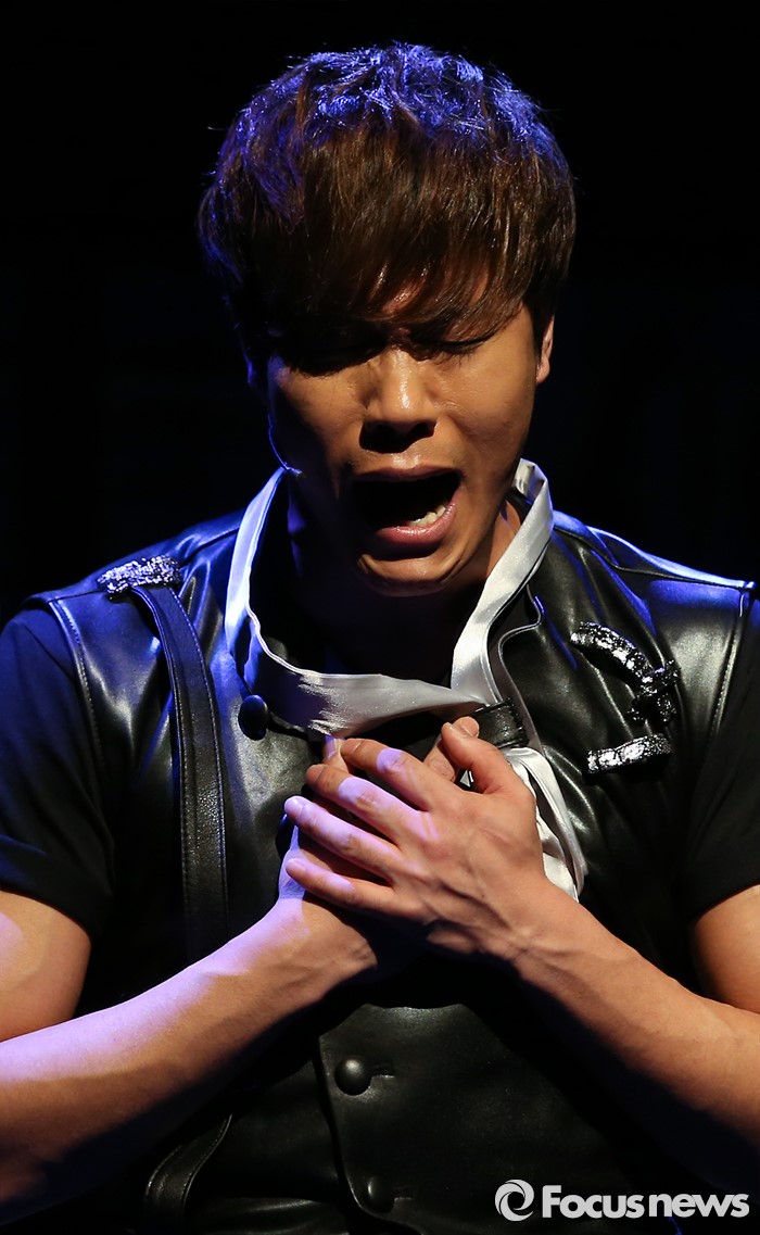 (서울=포커스뉴스) 3일 오후 서울 종로구 유니플렉스에서 열린 뮤지컬 '로멘틱 머슬' 프레스콜에 참석한 배우 이현이 주요장면을 시연하고 있다.