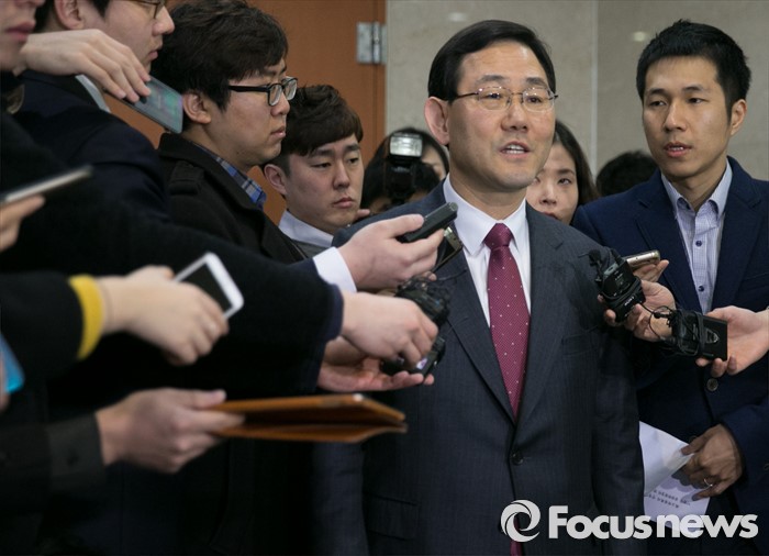 (서울=포커스뉴스) 공천 탈락한 주호영 새누리당 의원이 18일 오전 서울 여의도 국회 정론관에서 최고위원회의 재심 요구를 반려한 이한구 공천관리위원장과 관련 기자회견을 마친 뒤 취재진 질문에 답하고 있다.
