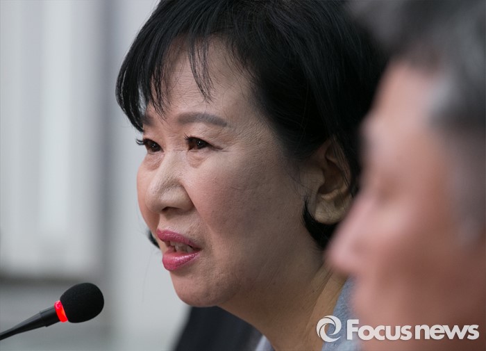 (서울=포커스뉴스) 공청 배제(컷오프)된 정청래 더불어민주당 의원의 선거구인 서울 마포을에 전략공천된 손혜원 홍보위원장이 18일 오전 서울 여의도 국회에서 열린 기자간담회에 참석해 발언하고 있다.