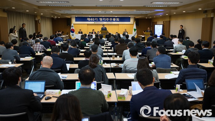 (서울=포커스뉴스) 이백훈 현대상선 대표이사가 18일 오전 서울 종로구 현대그룹빌딩에서 열린 제40기 정기주주총회에서 인사말을 하고 있다.