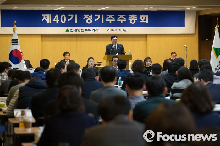 (서울=포커스뉴스) 이백훈 현대상선 대표이사가 18일 오전 서울 종로구 현대그룹빌딩에서 열린 제40기 정기주주총회에서 주주들의 말을 듣고 있다.