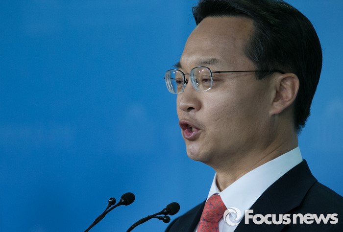 (서울=포커스뉴스) 공천 탈락한 조해진 새누리당 의원이 18일 오전 서울 여의도 국회 정론관에서 탈당 및 20대 총선 무소속 출마 기자회견을 하고 있다.