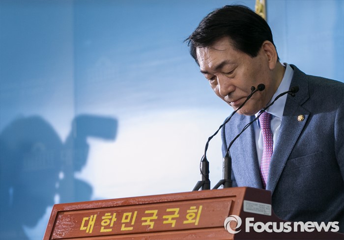 (서울=포커스뉴스) 공천 탈락한 안상수 새누리당 의원이 18일 오전 서울 여의도 국회 정론관에서 탈당 및 20대 총선 무소속 출마 기자회견을 마친 뒤 인사하고 있다.
