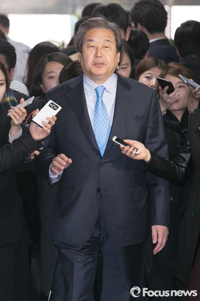 (서울=포커스뉴스) 김무성 새누리당 대표가 18일 오전 서울 여의도 국회에서 열린 비공개 최고위원회의를 마친 뒤, 기자들의 질문을 들으며 밖으로 나가고 있다.