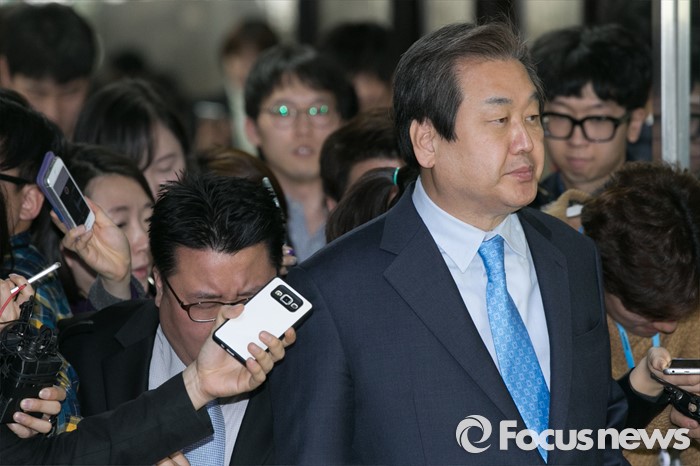 (서울=포커스뉴스) 김무성 새누리당 대표가 18일 오전 서울 여의도 국회에서 열린 비공개 최고위원회의를 마친 뒤, 기자들의 질문을 들으며 밖으로 나가고 있다.