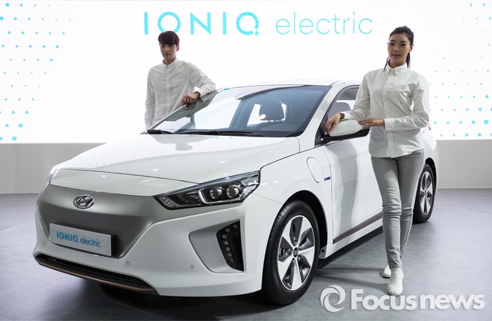 (제주=포커스뉴스) 18일 오전 제주 서귀포 제주국제컨벤션센터에서 열리고 있는 2016 국제전기자동차엑스포에서 현대 전기자동차 '아이오닉'의 두번째 차량 '아이오닉 일렉트릭'출시 발표회가 열리고 있다.