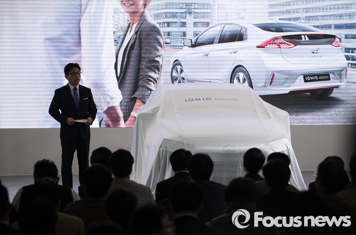 (제주=포커스뉴스) 18일 오전 제주 서귀포 제주국제컨벤션센터에서 열리고 있는 2016 국제전기자동차엑스포에서 현대 전기자동차 '아이오닉'의 두번째 차량 '아이오닉 일렉트릭'출시 발표회가 열리고 있다.