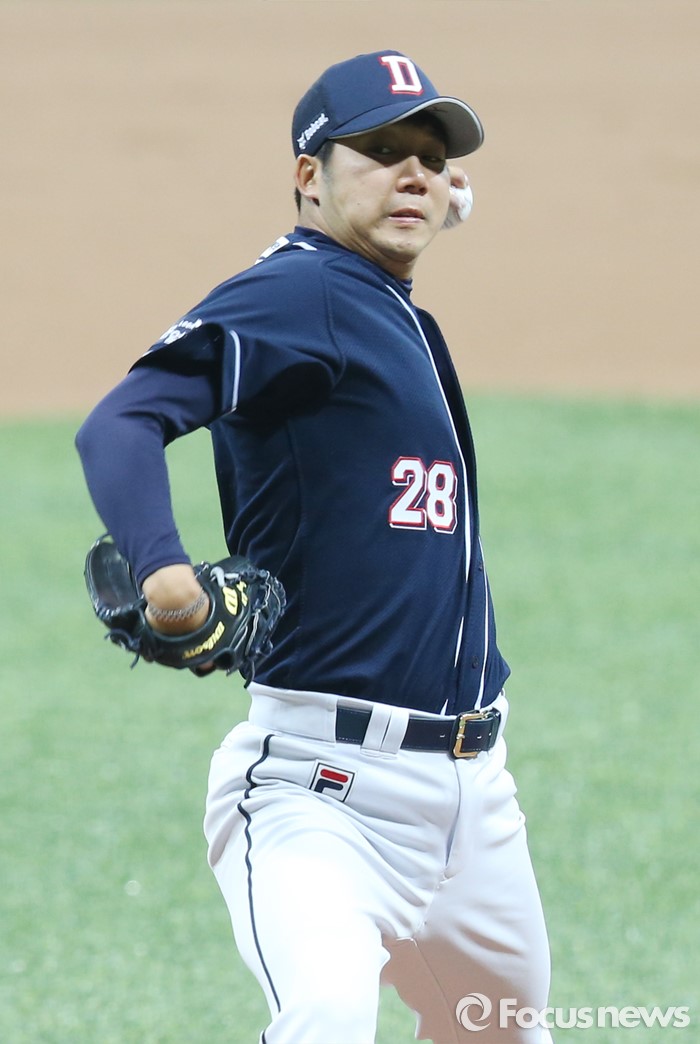 두산 선발 장원준의 투구