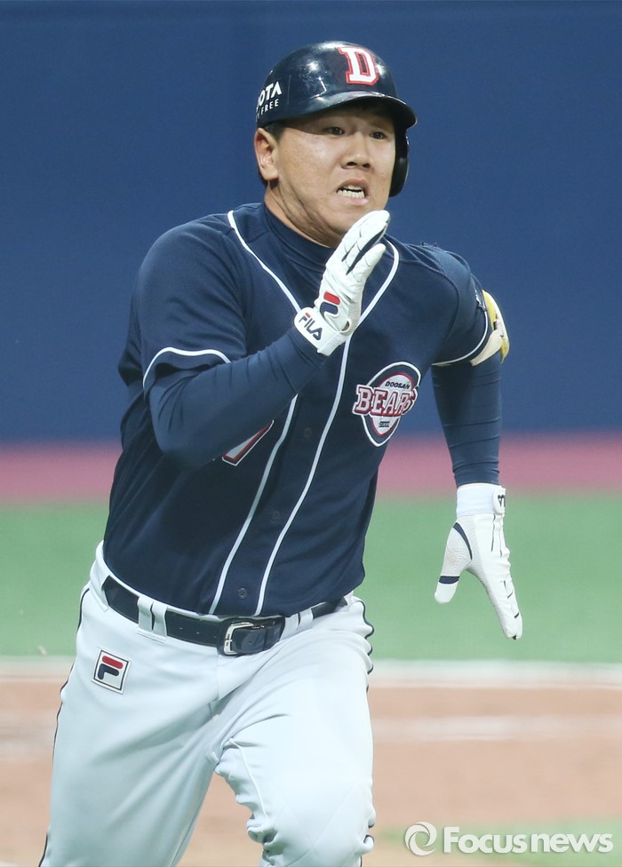 (서울=포커스뉴스) 18일 서울 고척스카이돔에서 열린 2016 프로야구 시범경기 5회초 두산 선두타자 이우성이 좌익수 왼쪽에 떨어지는 2루타를 치고 힘차게 뛰어 나가고 있다.