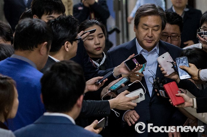 (서울=포커스뉴스) 김무성 새누리당 대표가 18일 오후 서울 여의도 국회 대표최고위원실에서 열린 최고위원회의에 참석하고 있다.