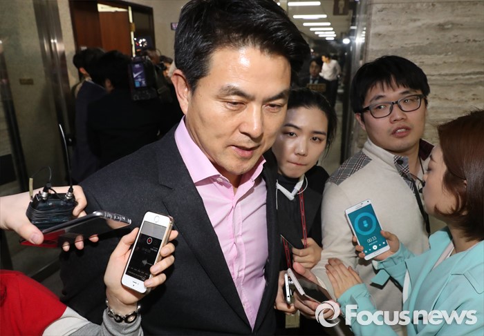 | △ 취재진 질문 받는 김태호 |