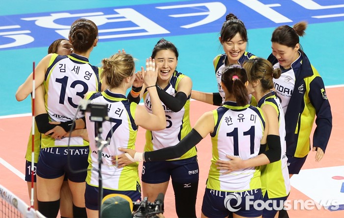 (서울=포커스뉴스) 현대건설이 IBK기업은행을 꺾고 올시즌 챔피언까지 1승만을 남겨놓게 됐다.