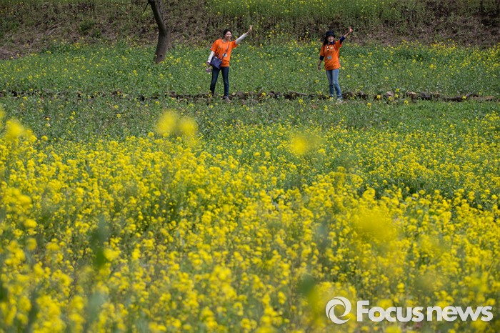 (제주=포커스뉴스)19일 오전 제주 서귀포 중문관광단지 일원에서 제18회 서귀포 유채꽃 국제걷기대회가 열리고 있다. 걷기대회에 참가한 관광객들이 엉덩물계곡 유채꽃길을 걷고 있다.