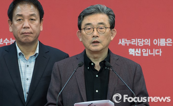 (서울=포커스뉴스) 이한구 공천관리위원장이 박종희 공관위원과 함께 19일 오후 서울 영등포구 새누리당사에서 총선 공천을 위한 여론조사 경선 결과를 발표하고 있다.