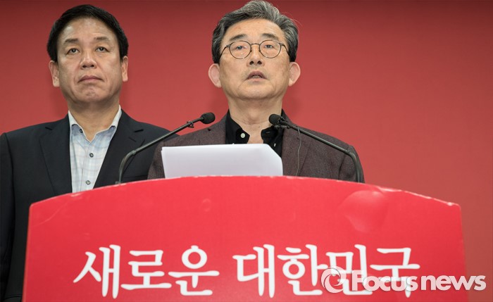 (서울=포커스뉴스) 이한구 공천관리위원장이 박종희 공관위원과 함께 19일 오후 서울 영등포구 새누리당사에서 총선 공천을 위한 여론조사 경선 결과를 발표하고 있다.