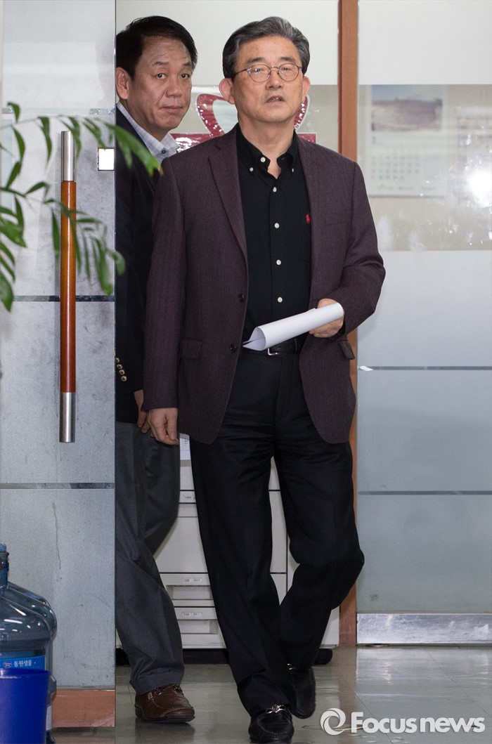 (서울=포커스뉴스) 이한구 공천관리위원장이 박종희 공관위원과 함께 19일 오후 서울 영등포구 새누리당사에서 총선 공천을 위한 여론조사 경선 결과를 발표하기 위해 이동하고 있다.
