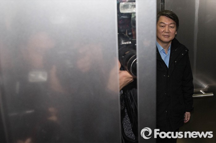 (서울=포커스뉴스) 안철수 국민의당 상임공동대표가 20일 오전 서울 마포구 국민의당 당사에서 공천관련 기자회견을 마친 후 엘리베이터를 타고 있다.