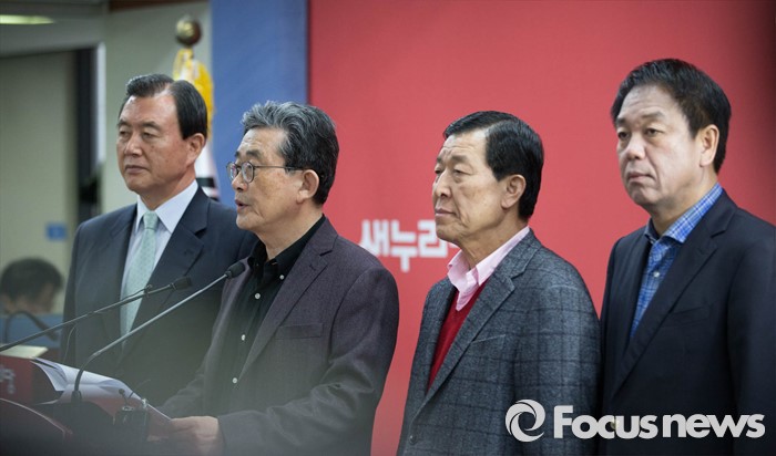 (서울=포커스뉴스) 이한구(왼쪽 두번째) 공천관리위원장이 20일 오후 서울 여의도 새누리당 당사에서 20대 총선 공천경선지역 여론조사 결과를 발표하고 있다.
