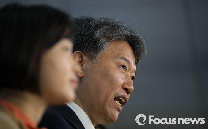 (서울=포커스뉴스) 김선동 전 통합진보당 의원이 20일 오후 서울 여의도 국회에서 기자회견을 열고 민주연합당 입당을 발표하고 있다.