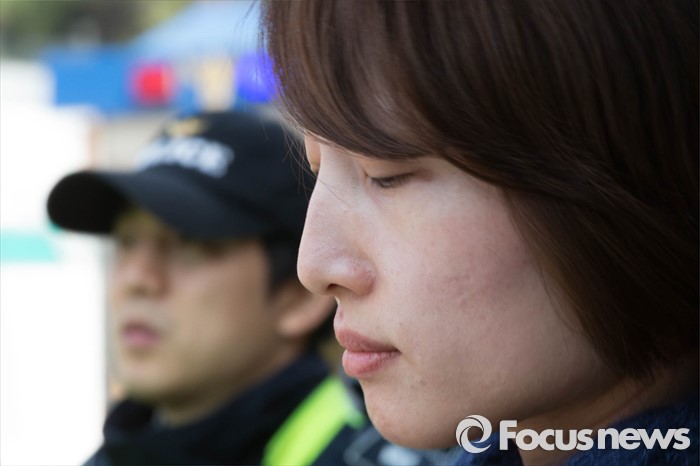 (서울=포커스뉴스) 20일 오후 서울 종로구 청운동사무소 인근에서 백도라지씨가 경찰벽에 막혀 1인 시위를 못하고 있다. 이날 백씨는 지난해 11월 집회 도중 물대포에 맞아 쓰러진 아버지 백남기씨 사건에 대한 경찰당국의 정확한 수사와 사과를 촉구했다.