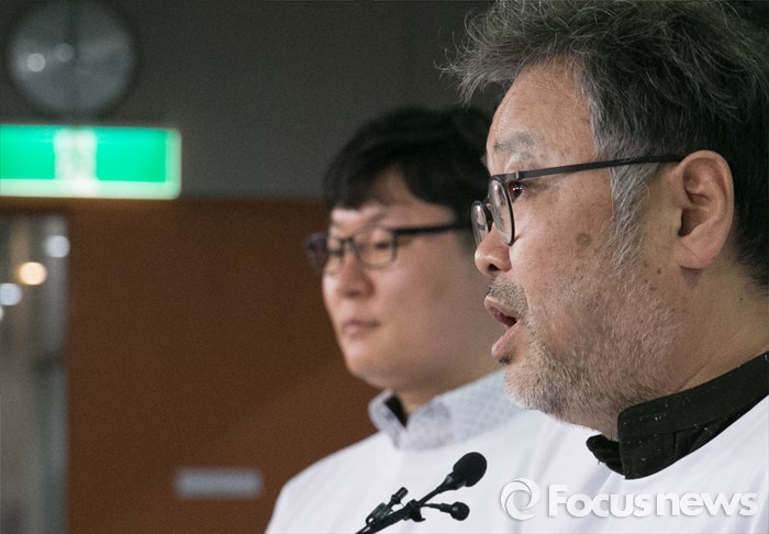 (서울=포커스뉴스) 조동원(오른쪽) 새누리당 홍보기획본부장이 21일 오전 서울 여의도 국회 정론관에서 20대 총선 슬로건 및 홍보전략 발표 등 기자회견을 하고 있다.