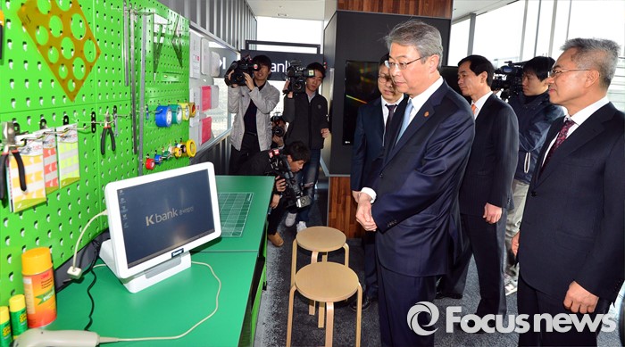 K뱅크 및 카카오뱅크 관계자들은 "새로운 형태의 은행 도입, 국내의 높은 모바일 환경 수준에 맞춘 서비스 등을 내놔야 하는 만큼 일이 더디게 진척돼 보이는 것"이라고 말했다.(서울=포커스뉴스) 임종룡(가운데) 금융위원장이 21일 오전 서울 종로구 더케이트윈타워에서 열린 '인터넷은행 현장간담회'에 참석해 아이디어룸을 살펴보고 있다. 2016.03.21 오장환 기자