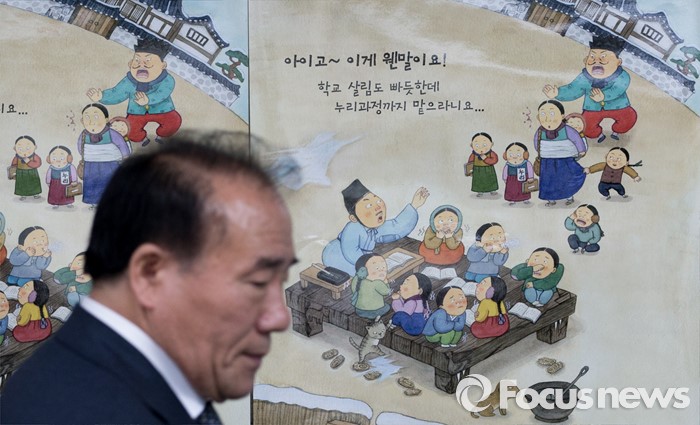 (서울=포커스뉴스) 21일 오후 서울특별시교육청에서 장휘국 전국시도교육감협의회 회장이 교육감 탄압 중단 성명서를 발표하기 위해 기자회견장으로 들어서고 있다.