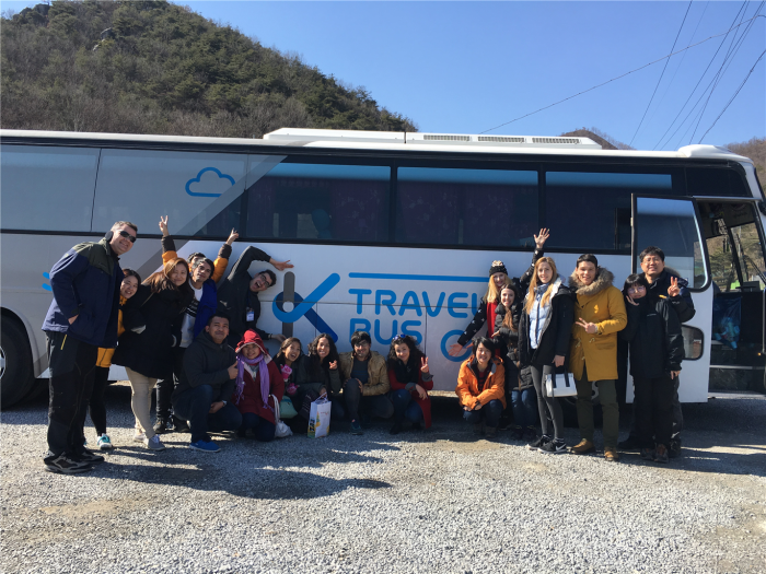 문체부는 방문위를 비롯해 서울시와 대구시, 강원도, 전라남도, 경상북도, 동남권관광협의회(부산시, 울산시, 경상남도) 등 8개 광역자치단체와 함께 공동으로 K-트래블버스의 운영코스를 6개 구간으로 개발·확정했다. 특히 '2016 올해의 관광도시'인 통영과 제천-무주 연합 코스는 이번 운영을 통해 관광객들에게 처음으로 선보인다.외국인 전용 버스자유여행상품 'K-트래블버스'가 오는 25일부터 본격적으로 운영된다. 사진은 경북코스 시범운영 중 단체사진.<사진제공=문화체육관광부>