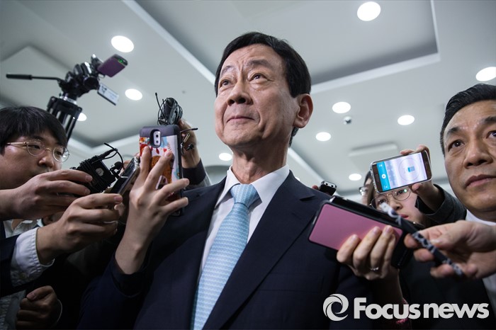| △ 중앙위 회의 참석 중...취재진에 둘러쌓인 진영 |