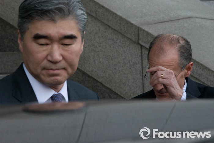 (서울=포커스뉴스) 성 김(왼쪽) 미국 국무부 동아태 부차관보 겸 대북정책특별대표와 대니얼 프리드 미국 국무부 제재정책조정관이 21일 오후 서울 종로구 외교부에서 '한미 고위급 대북제재 협의'를 마친 후 차량으로 향하고 있다.