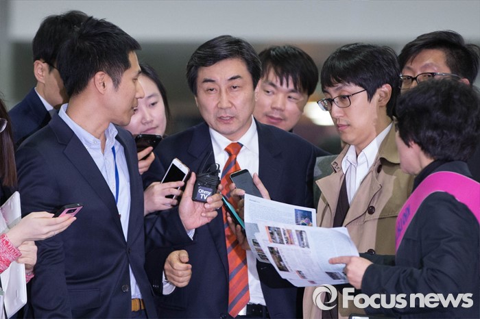(서울=포커스뉴스) 비례대표 선정을놓고 김종인 비대위 대표가 당무를 거부하는 등 더불어민주당의 진통이 계속되고 있는 21일 오후 이종걸 더민주 원내대표가 서울 여의도 국회 의원회관에서 열린 중앙위원회 행사장으로 들어서고 있다.