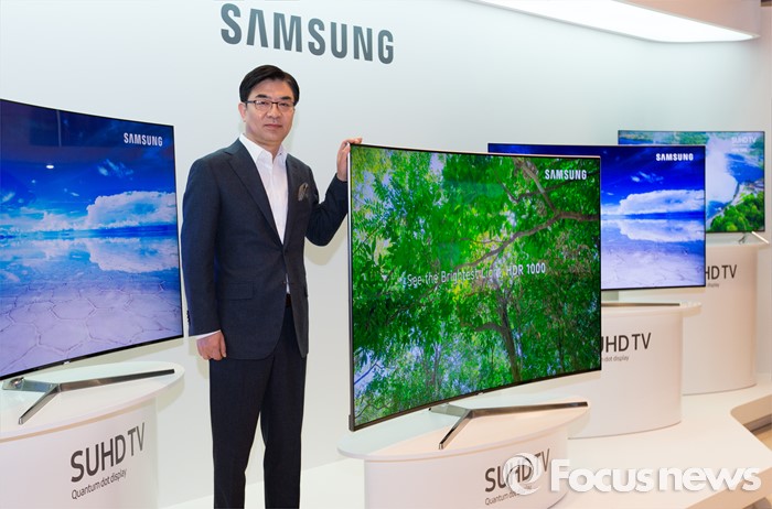 (서울=포커스뉴스) 김현석 삼성전자 영상디스플레이사업부 사장이 22일 오전 서울 강남구 삼성전자 서초사옥에서'퀀텀닷 디스플레이 SUHD TV' 제품을 선보이고 있다.