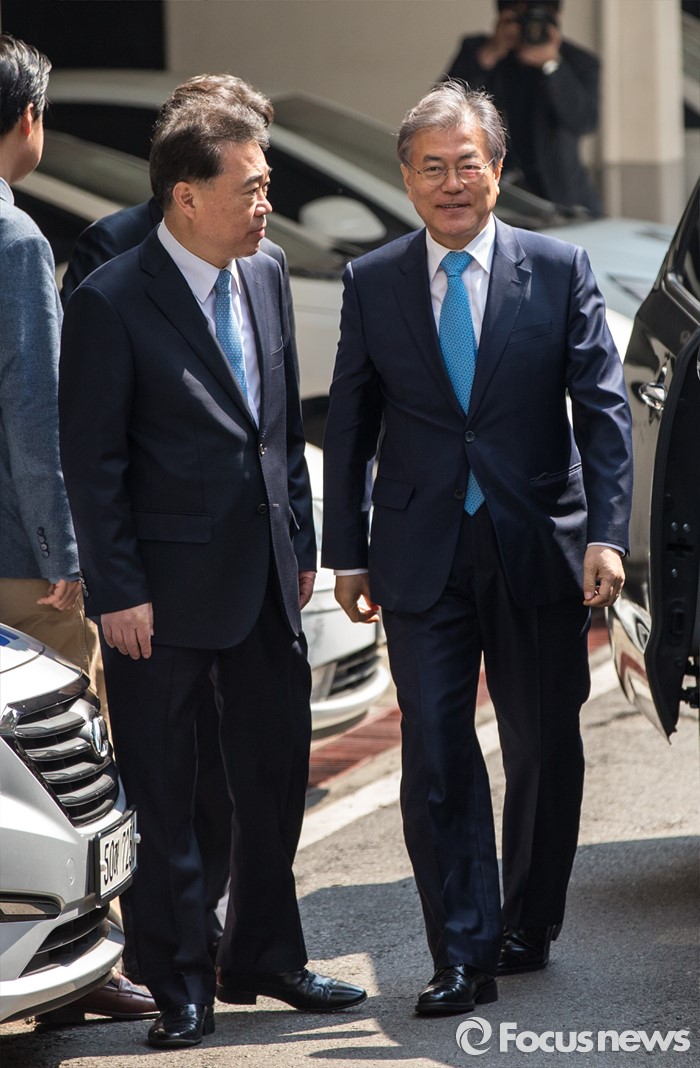(서울=포커스뉴스) 문재인 전 더불어민주당 대표가 김종인 비상대책위 대표와 면담하기 위해 22일 오후 서울 종로구 김 대표 자택으로 이동하고 있다.